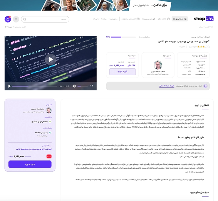 بخش های مدیریت دوره های آموزشی و فیلتر های فروشگاه هم به صورت جداگانه در پیشخوان وردپرس طراحی شده است.