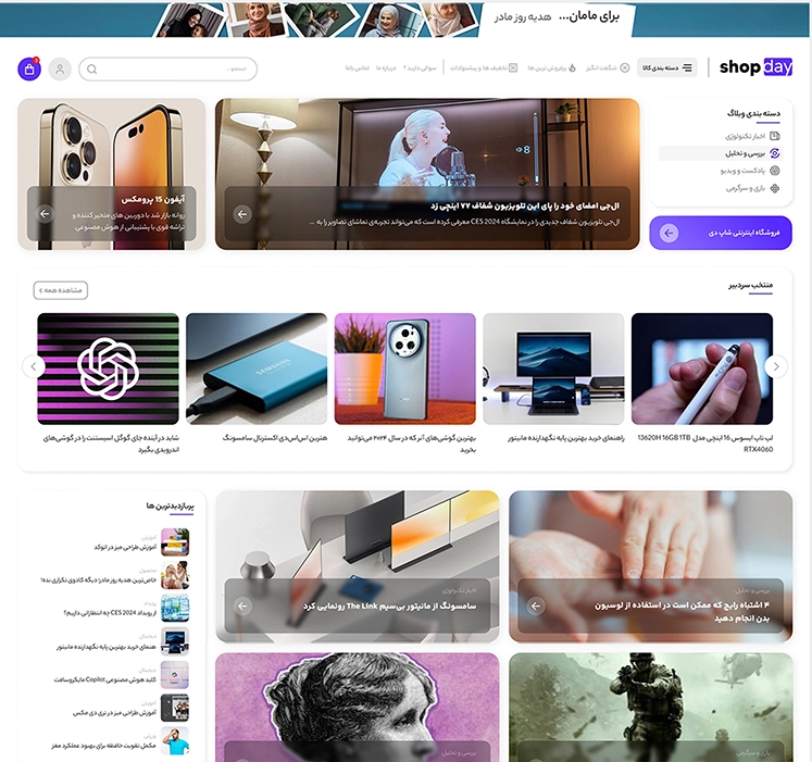 ویجت های اختصاصی برای ابعاد تلفن همراه